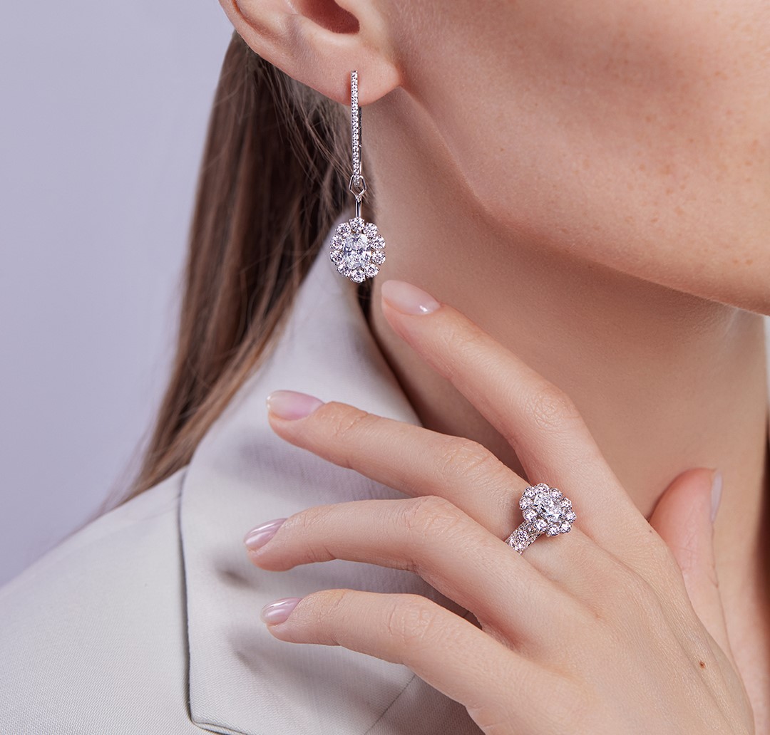 Второй акт полон магии и волшебства. Потянув секретный механизм на основании подвесных элементов, мы словно открываем таинственную шкатулку, и вынимаем из нее восхитительный цветок, в сердце которого сияет овальный бриллиант. Подобная трансформация меняет внешний вид драгоценности и вдохновляет на создание оригинальных образов. Бриллиантовое окружение центральных камней создает особую эстетику, подчеркивая статусность украшения и безупречный вкус своей обладательницы.