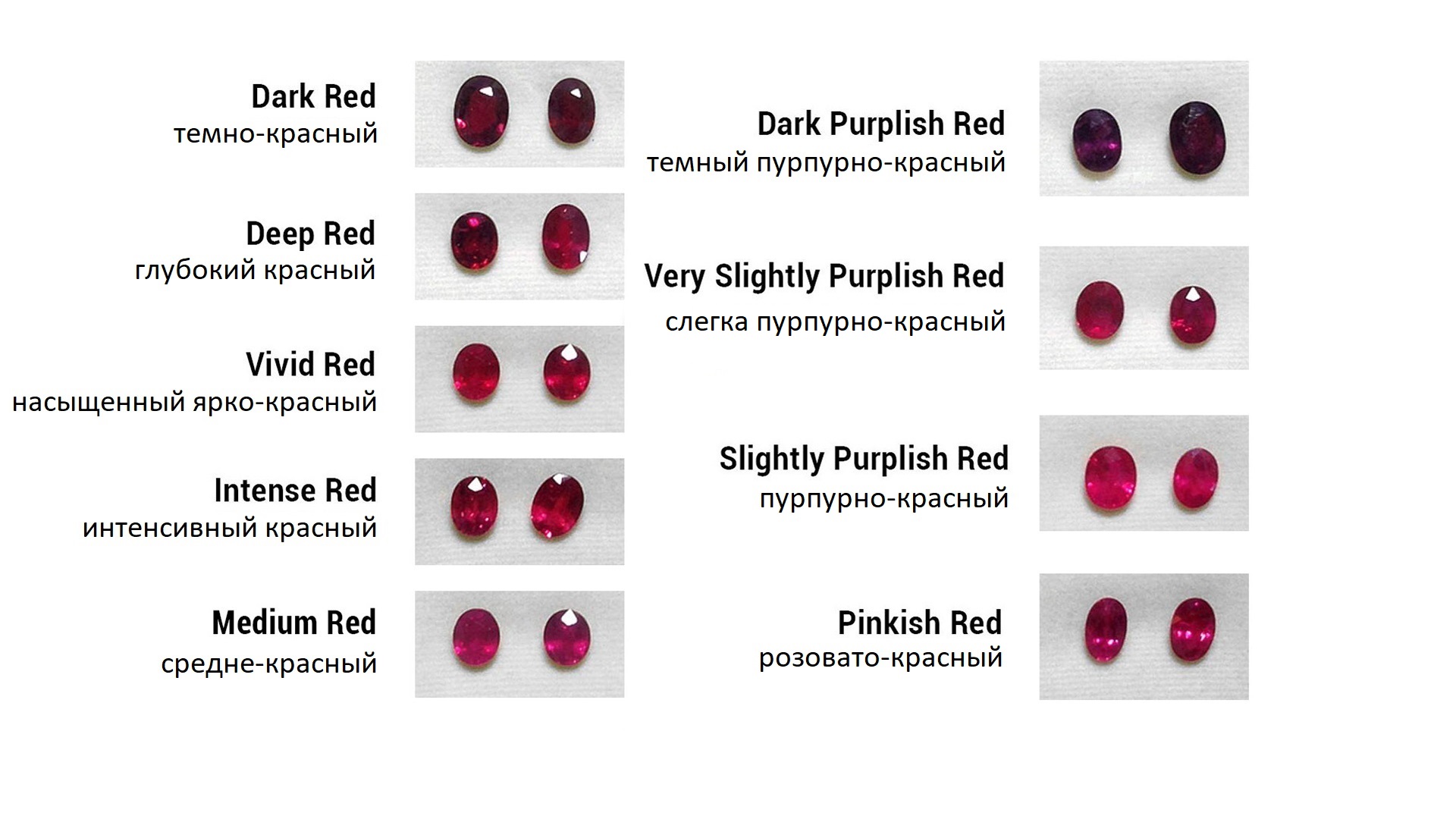 В российской классификации цвет рубинов подразделяется на три группы.