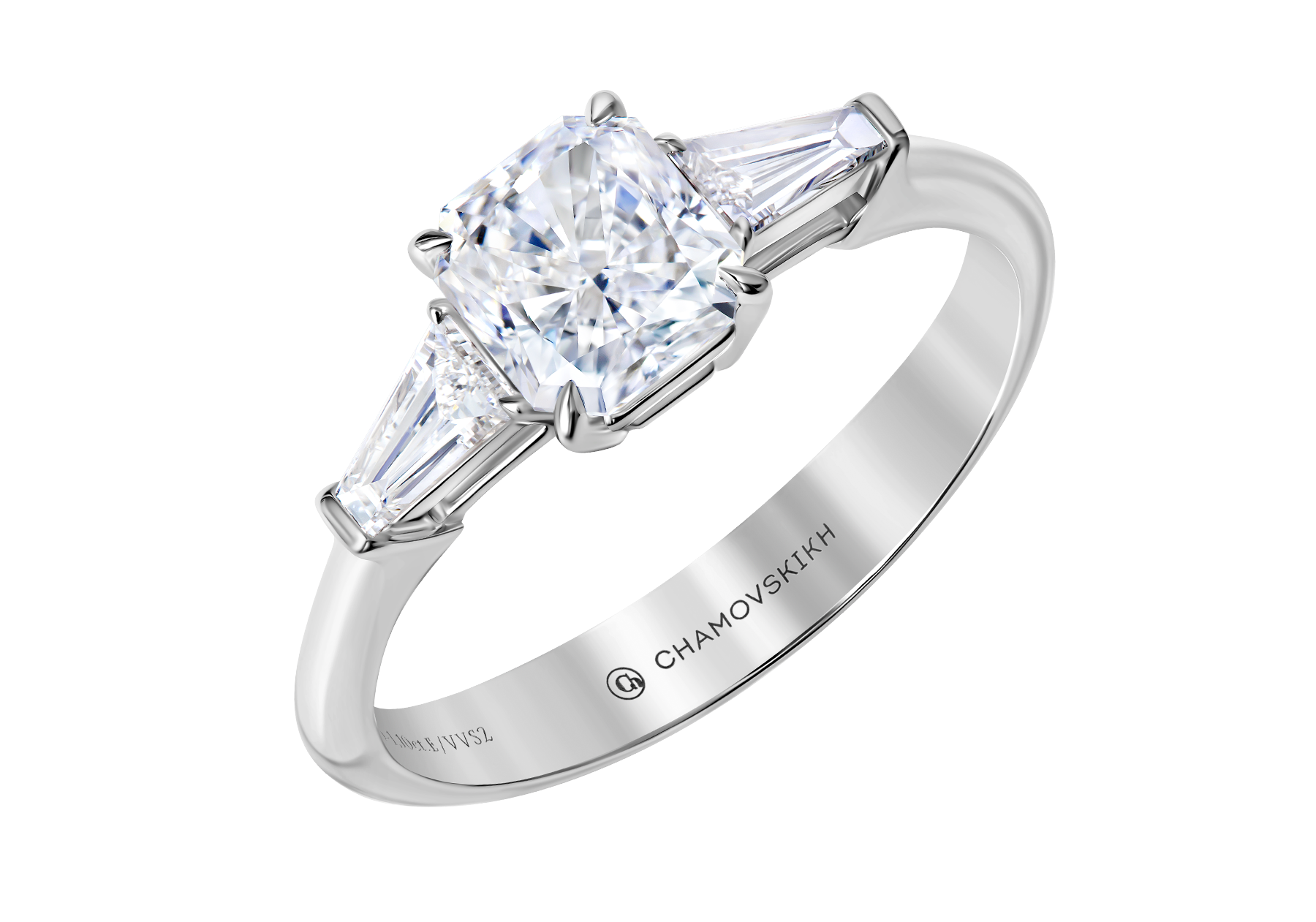 Идеальное помолвочное кольцо – синергия вневременного дизайна и личного значения. Это то украшение, которое сопровождает вас днем и ночью, поэтому так важно, чтобы оно отличалось комфортом и тактильной привлекательностью. Композиция обворожительного кольца из коллекции Classic строится вокруг прекрасного бриллианта в огранке «радиант» весом более 1 ct. Завораживающую игру его драгоценных искр усиливает сияние двух бриллиантовых «багетов». Это кольцо станет воплощением мечты о классическом украшении.