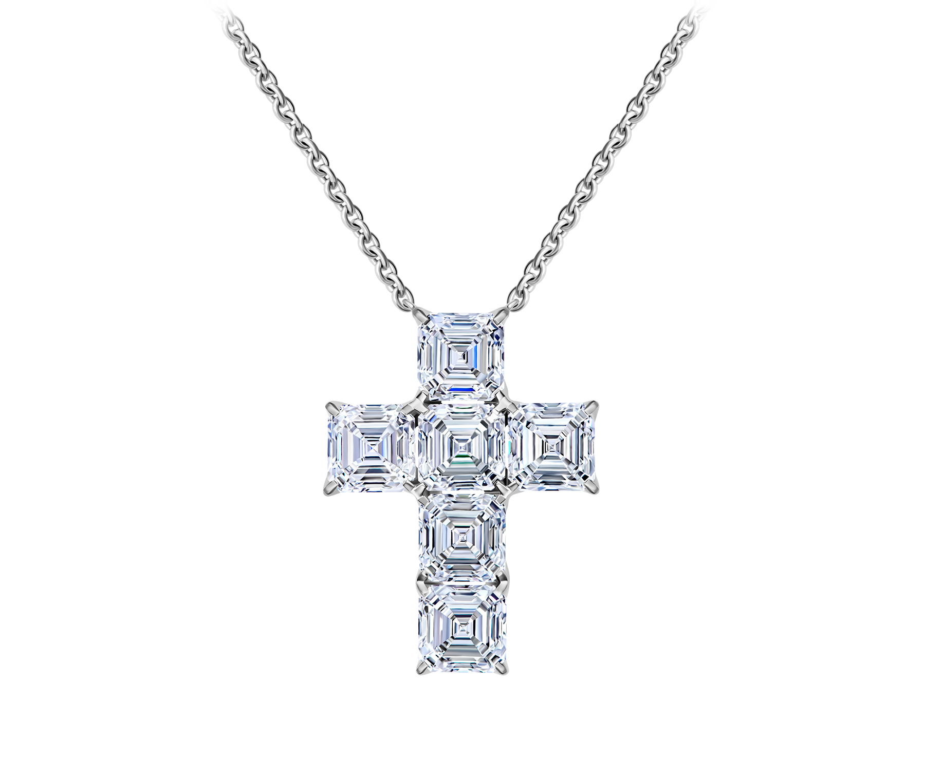 Колье с подвесом в форме креста, инкрустированного бриллиантами, – актуальная классика. Аксессуар давно занял уверенную позицию в базовом гардеробе, получив статус жизнеутверждающего атрибута. В коллекции Chamovskikh представлены классические модели со сложным техническим исполнением. Шесть идеально подобранных бриллиантов огранки «ашер» общим весом 3,07 ct обеспечивают безупречную геометрию, а искусная закрепка позволяет свету проникать в сердце каждого камня, создавая бесподобное сияние.