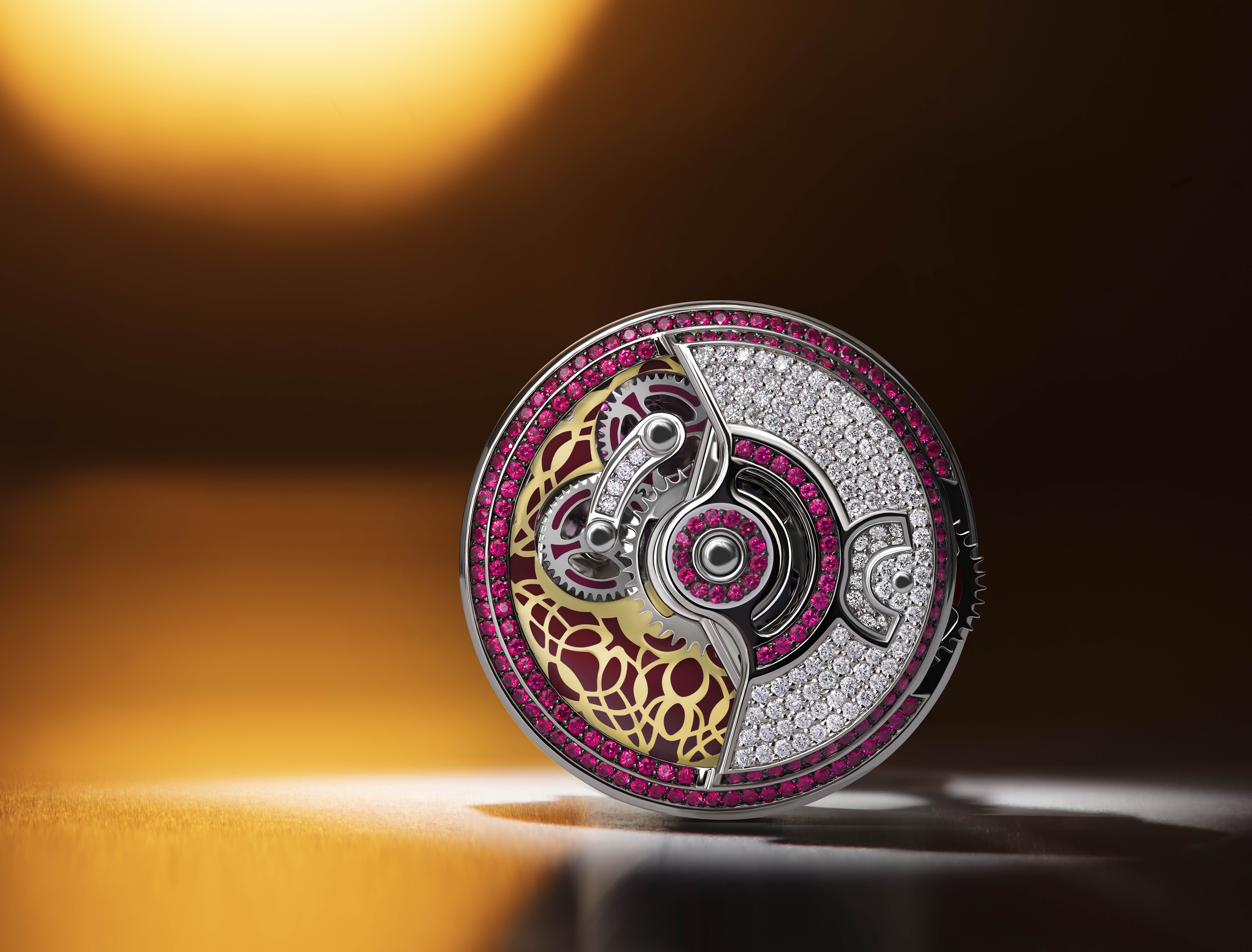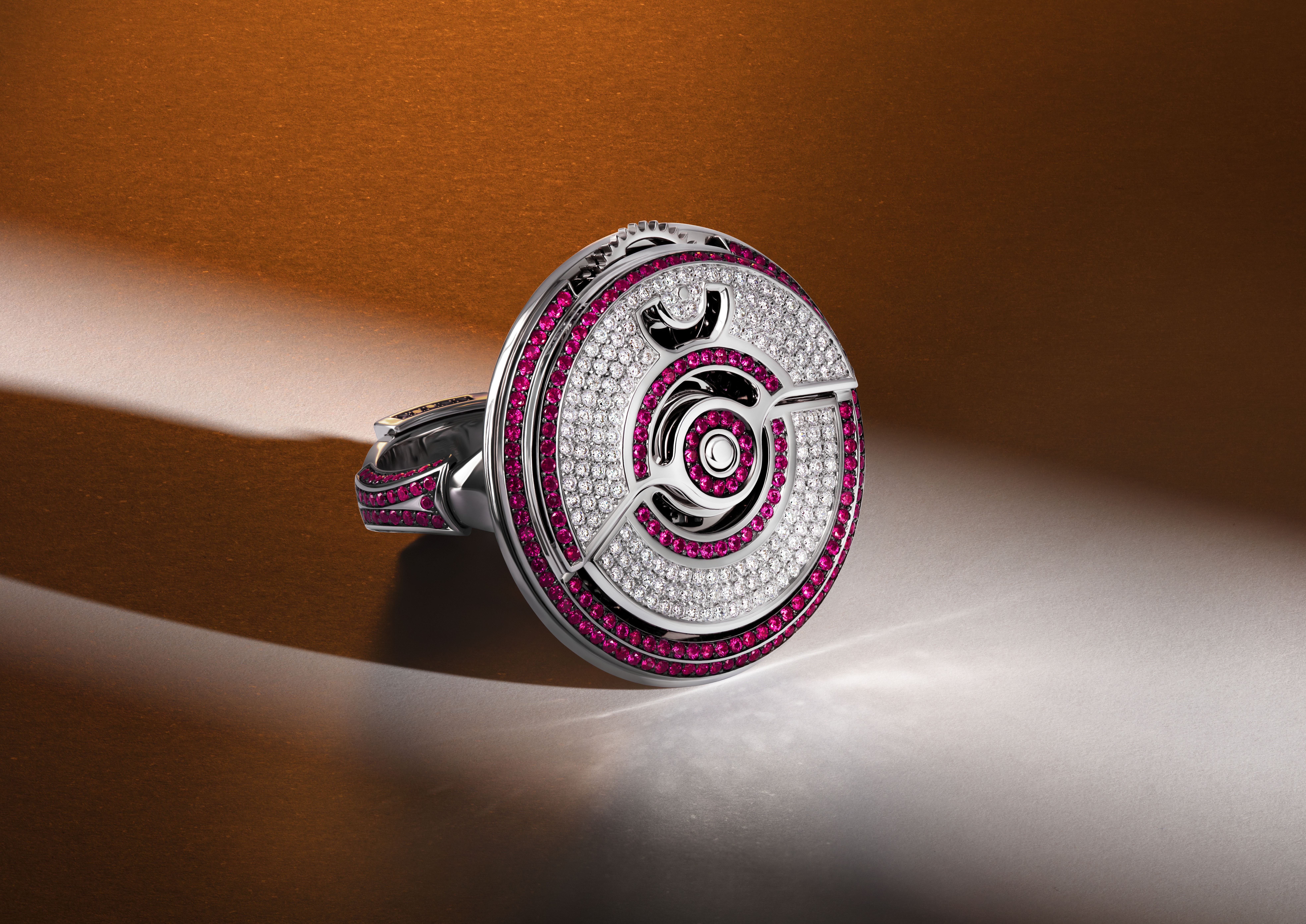 Выразительные кольца инкрустированы бриллиантами, рубинами, сапфирами. Стилизованный «заводной элемент» на торцевой части драгоценности приводит в движение пять шестеренок. Они, в свою очередь, приоткрывают завесу, демонстрируя механизм кольца. На скрытую золотую пластину за многочисленными деталями может быть нанесен значимый текст или изображение. Каждому украшению присвоен идентификационный номер, гарантирующий принадлежность к лимитированной серии.