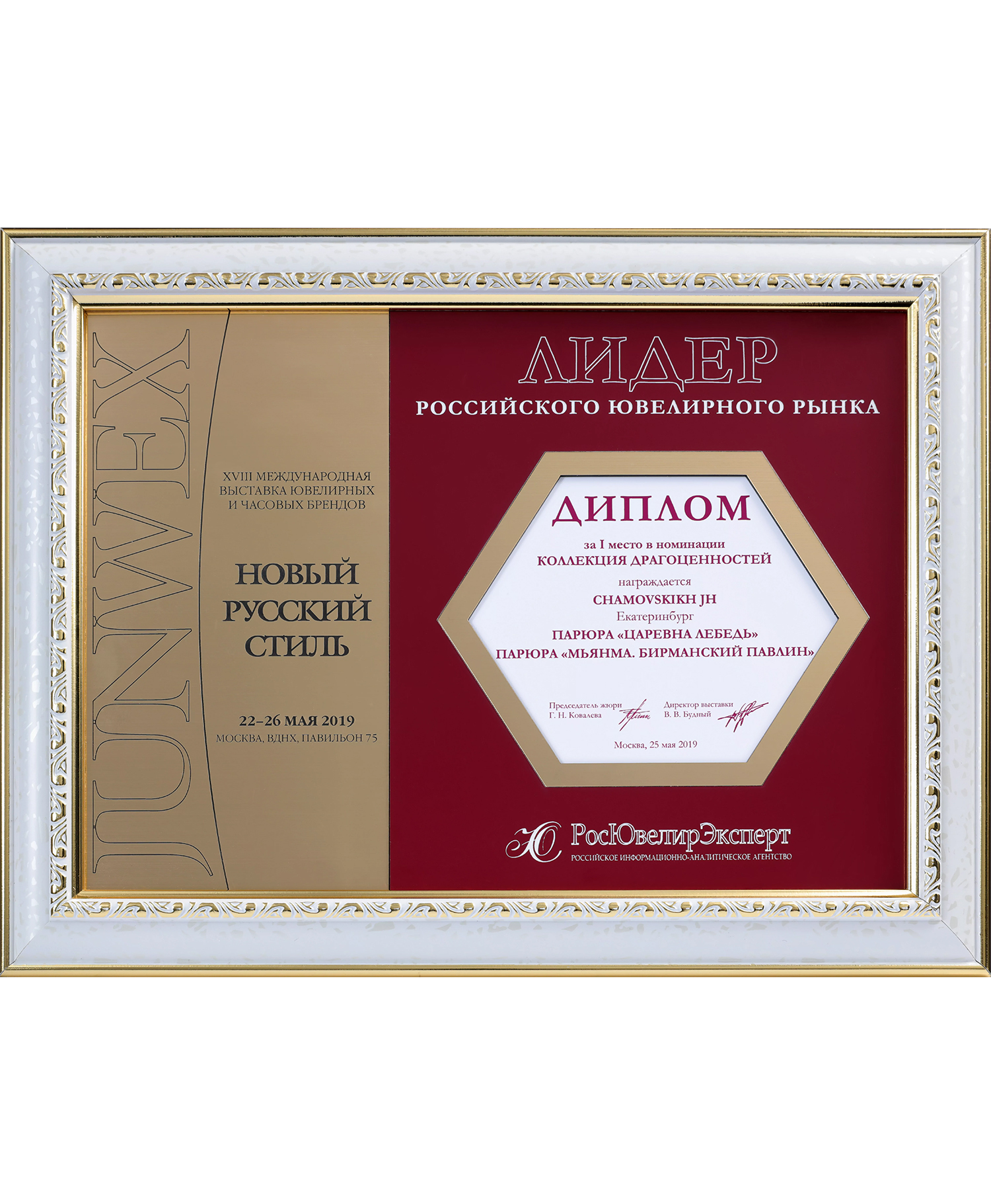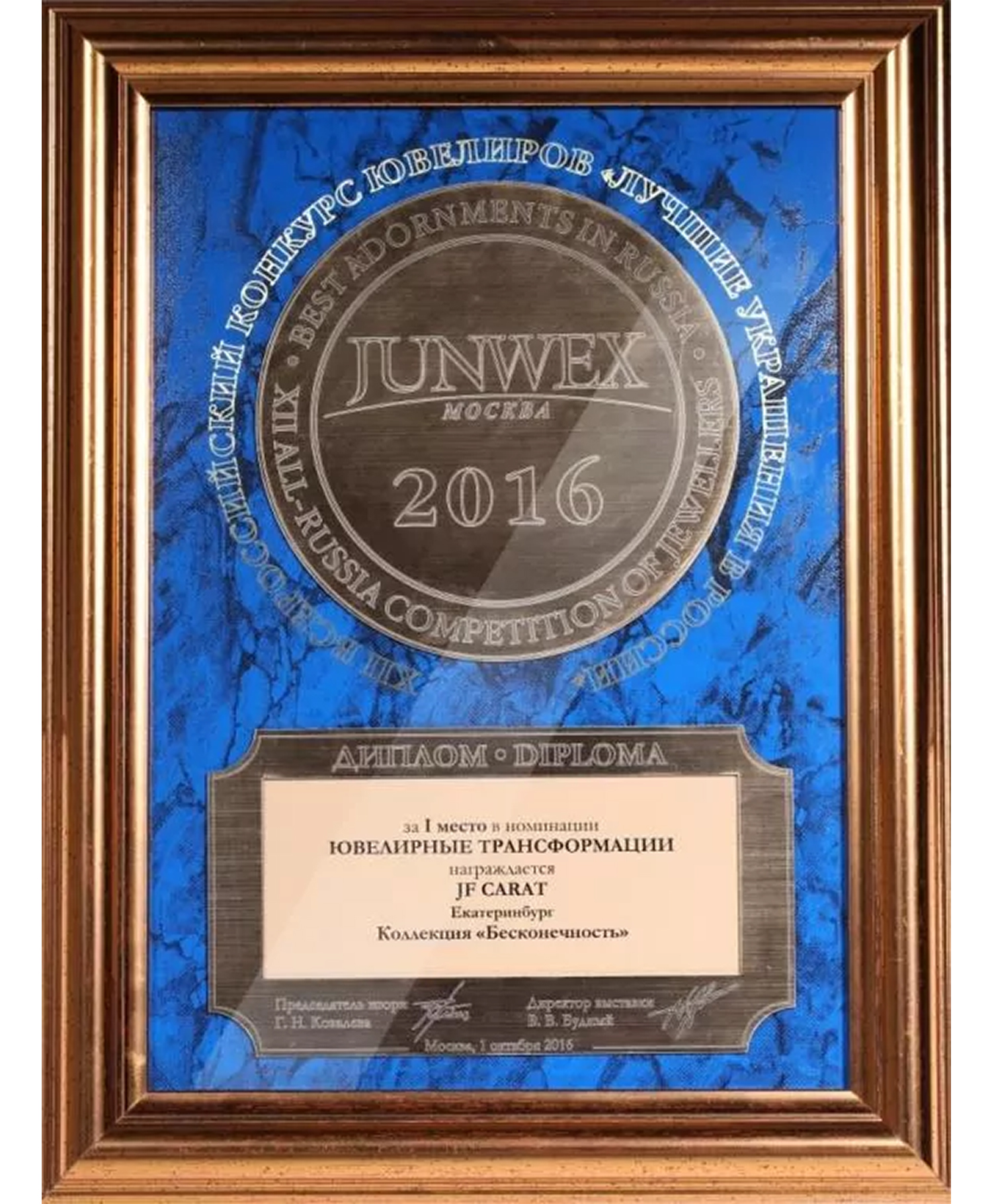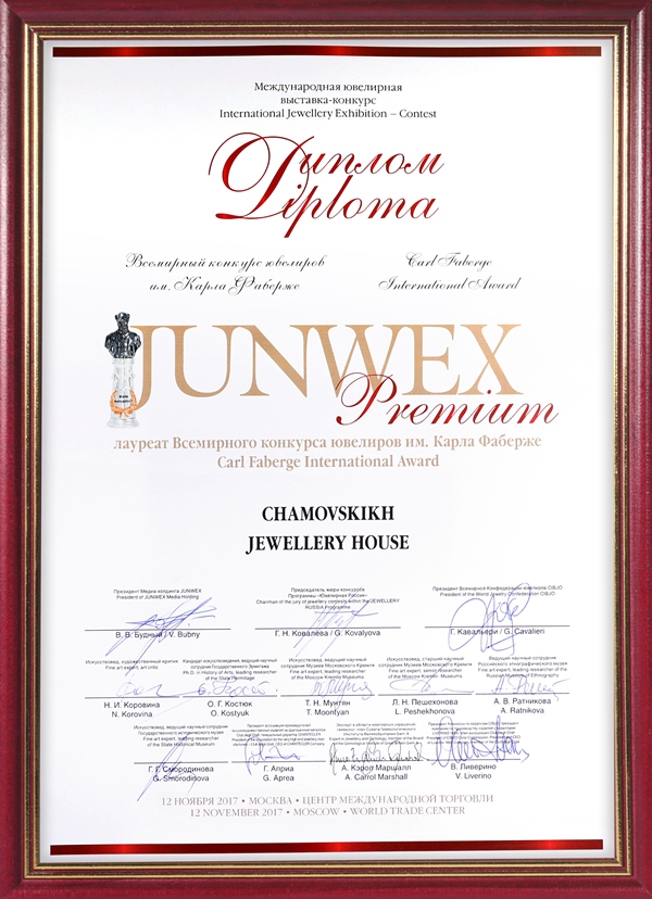 Диплом Junwex Москва. 1 место в номинации "Ювелирные трансформации" 2016 г.