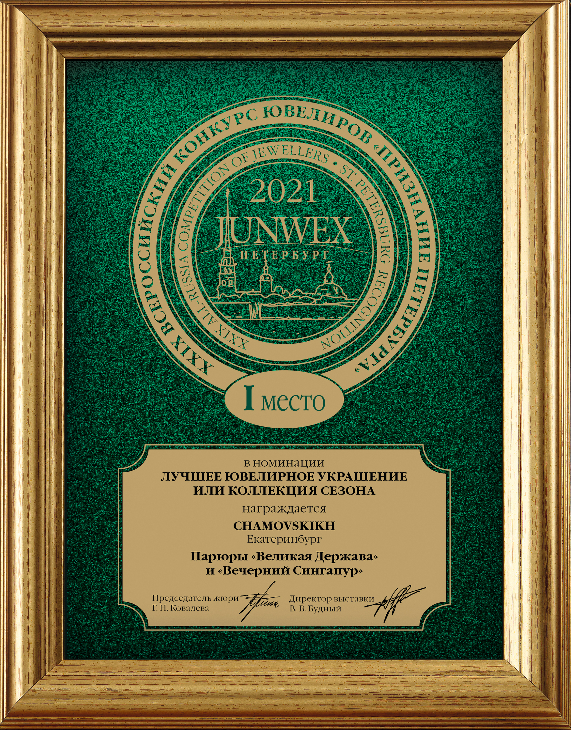 1 место на выставке Junwex "Петербург 2021г. Парюра "Великая Держава" и "Вечерний Сингапур"