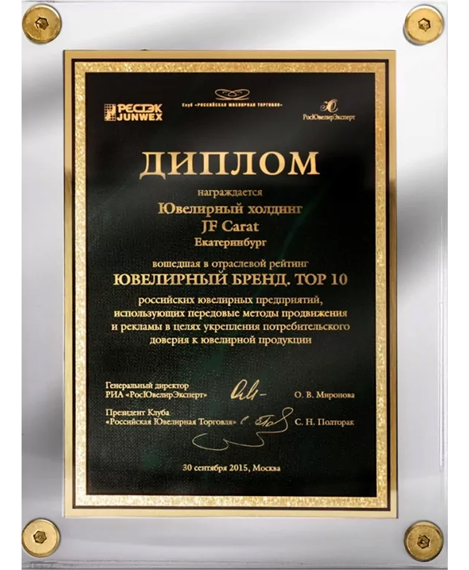 Диплом ювелирный бренд Топ-10