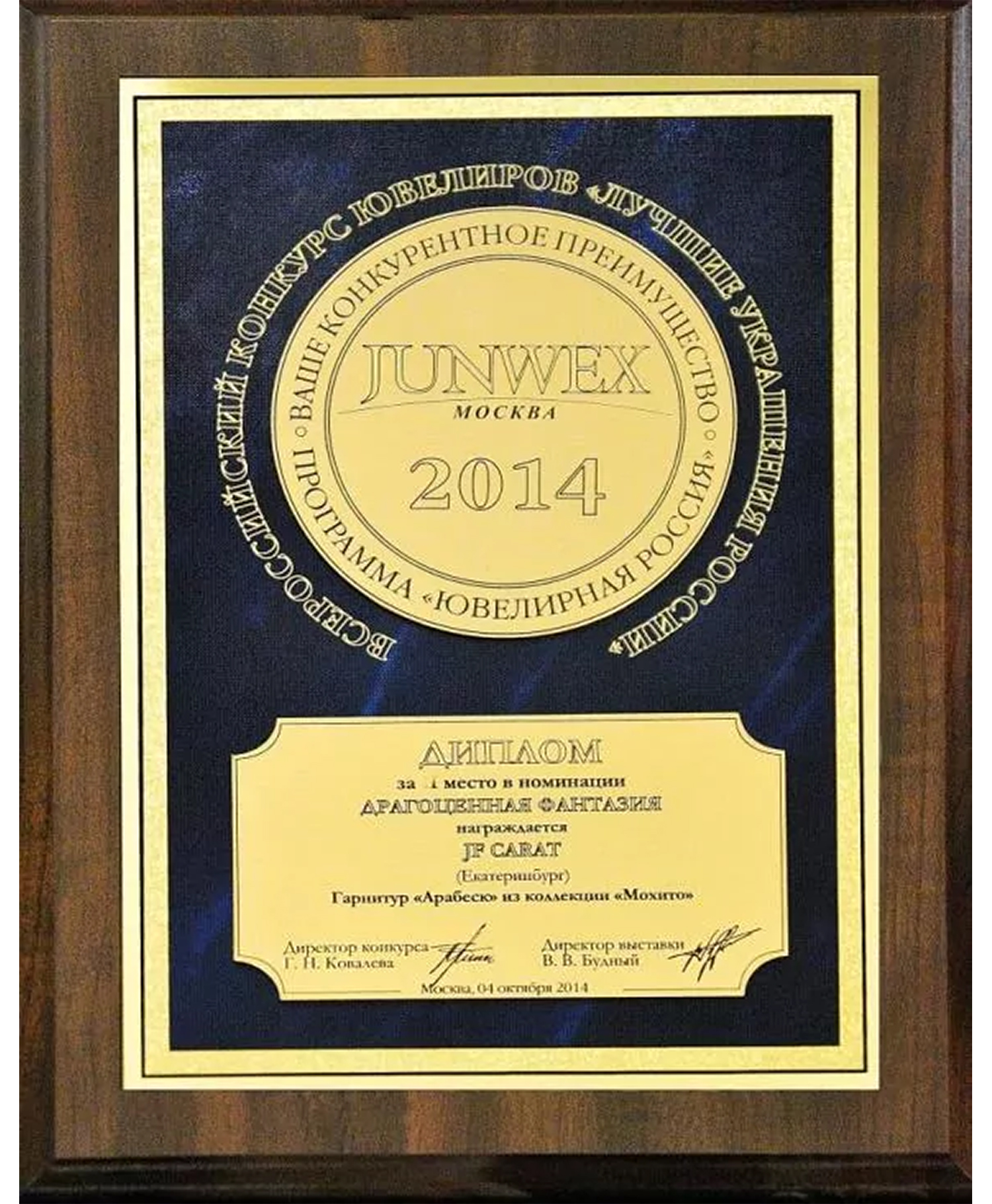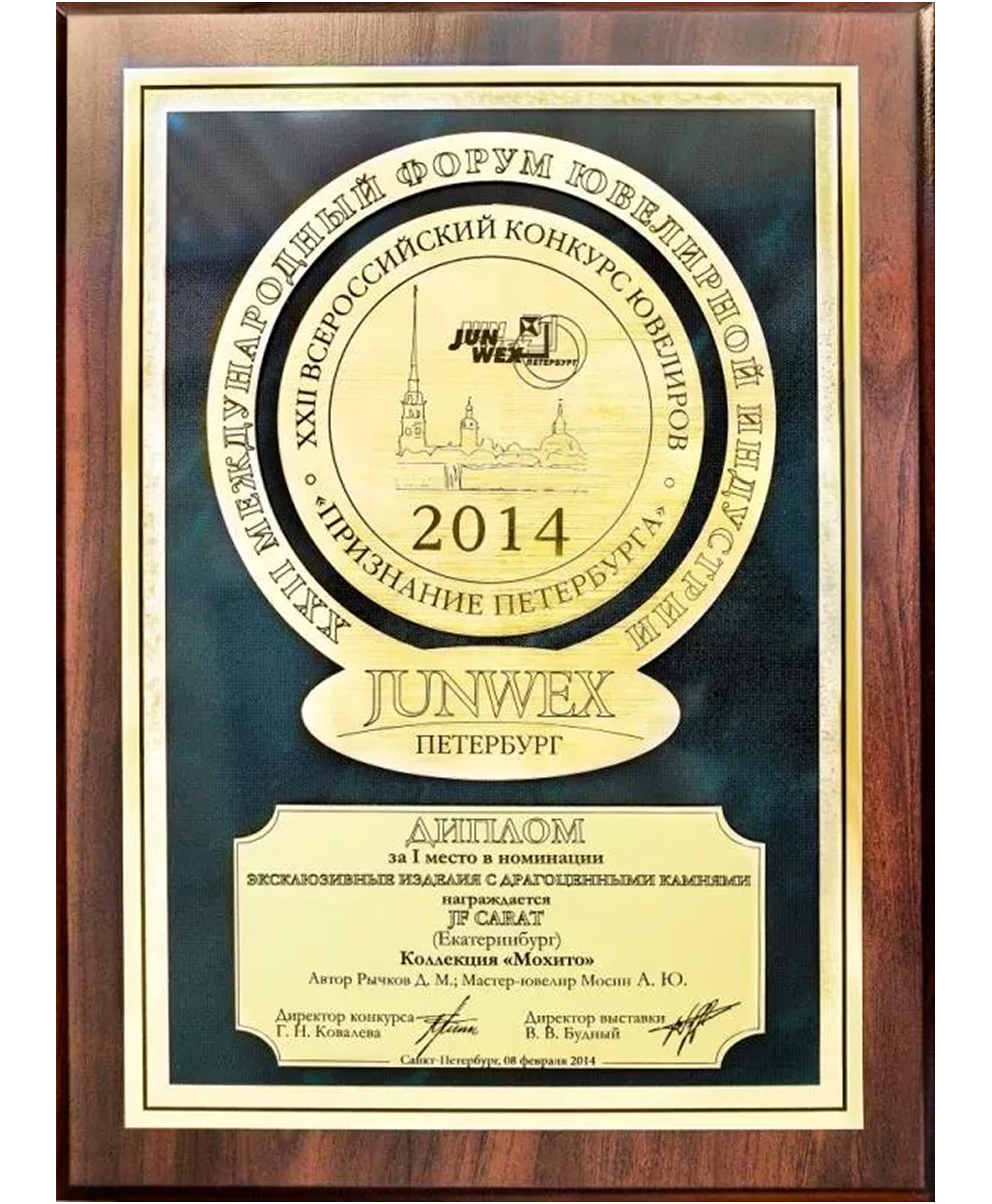 Диплом Junwex Петербург. 1 место в номинации "Классика 20 столетия" 2014 г. Коллекция "Мохито"
