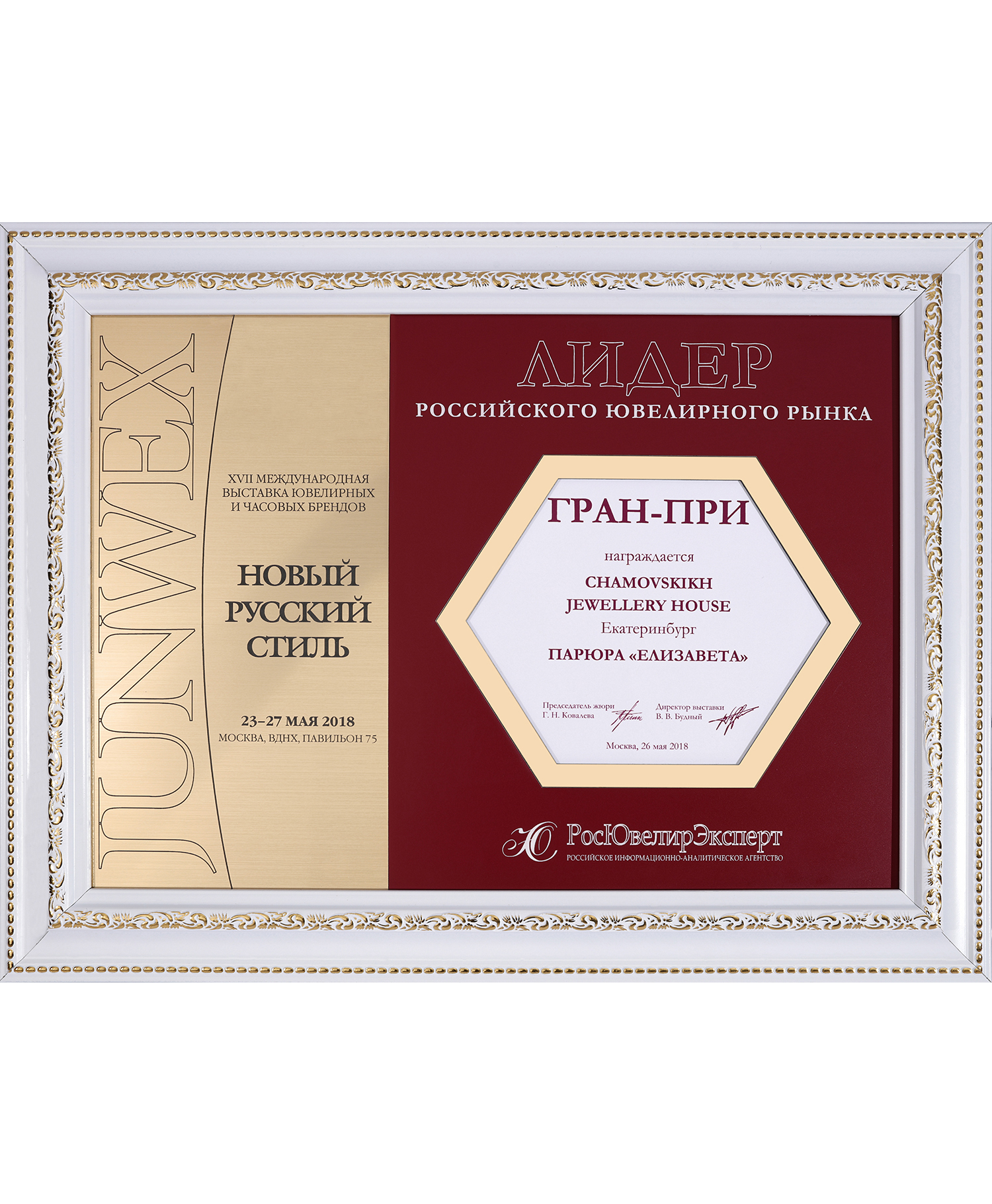 Диплом Junwex Москва. 1 место в номинации "Бриллиантовый стиль" 2016 г. Гарнитур "Мерилин"