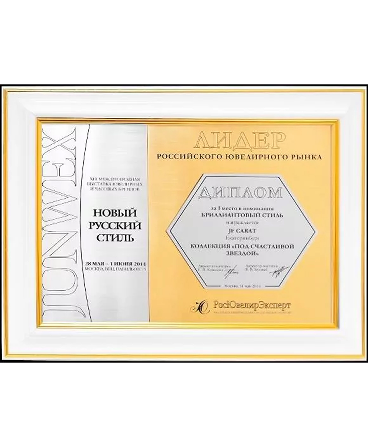 Диплом Junwex Москва. 1 место в номинации "Бриллиантовый стиль" 2014 г. Коллекция "Под счастливой звездой"