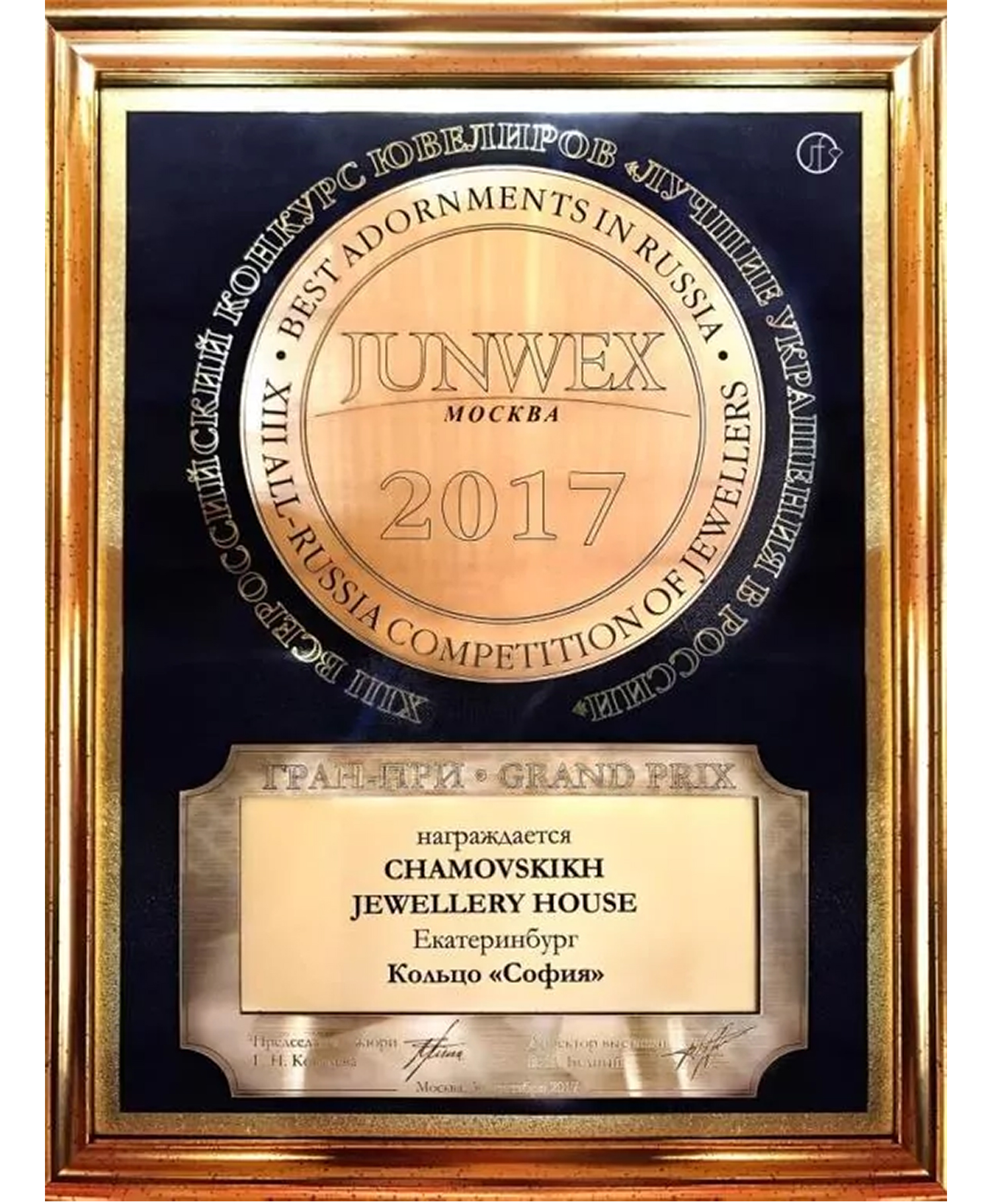 Диплом Junwex Москва. Гран-при 2017г. Кольцо "София"
