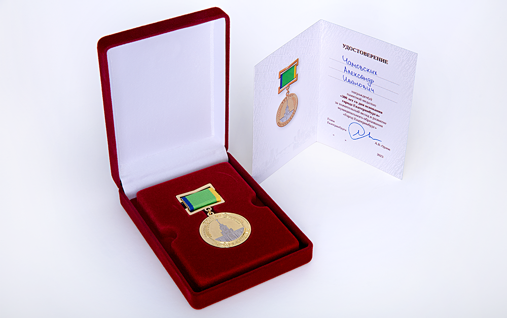 Глава ювелирного дома CHAMOVSKIKH, председатель Гильдии ювелиров Урала Александр Чамовских награжден памятной медалью «300 лет со дня основания города Екатеринбурга» за значительный вклад в развитие города и прославление ювелирного искусства Урала не только в нашей стране, но и далеко за ее пределами.