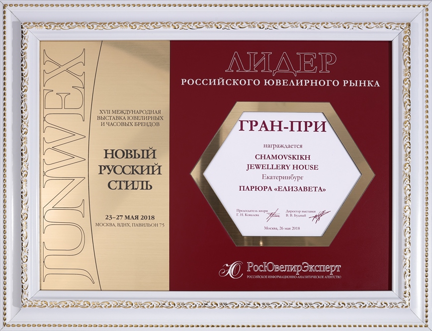 CHAMOVSKIKH Jewellery House получил высшую награду – Гран-при конкурса в рамках международной выставки «JUNWEXМосква-2018».