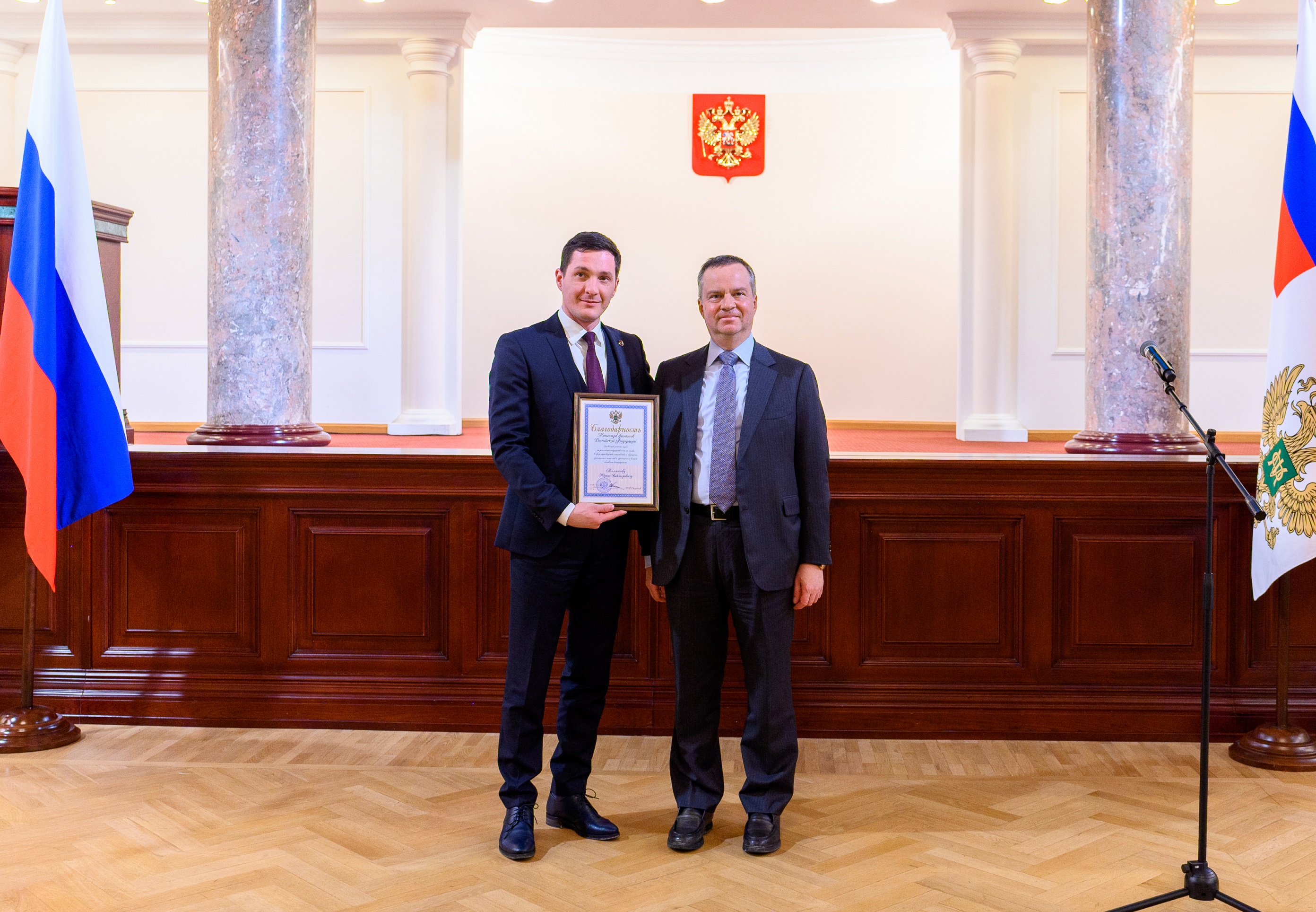 Вице-президенту CHAMOVSKIKH Юрию Толмачеву вручили ведомственную награду Министерства Финансов РФ