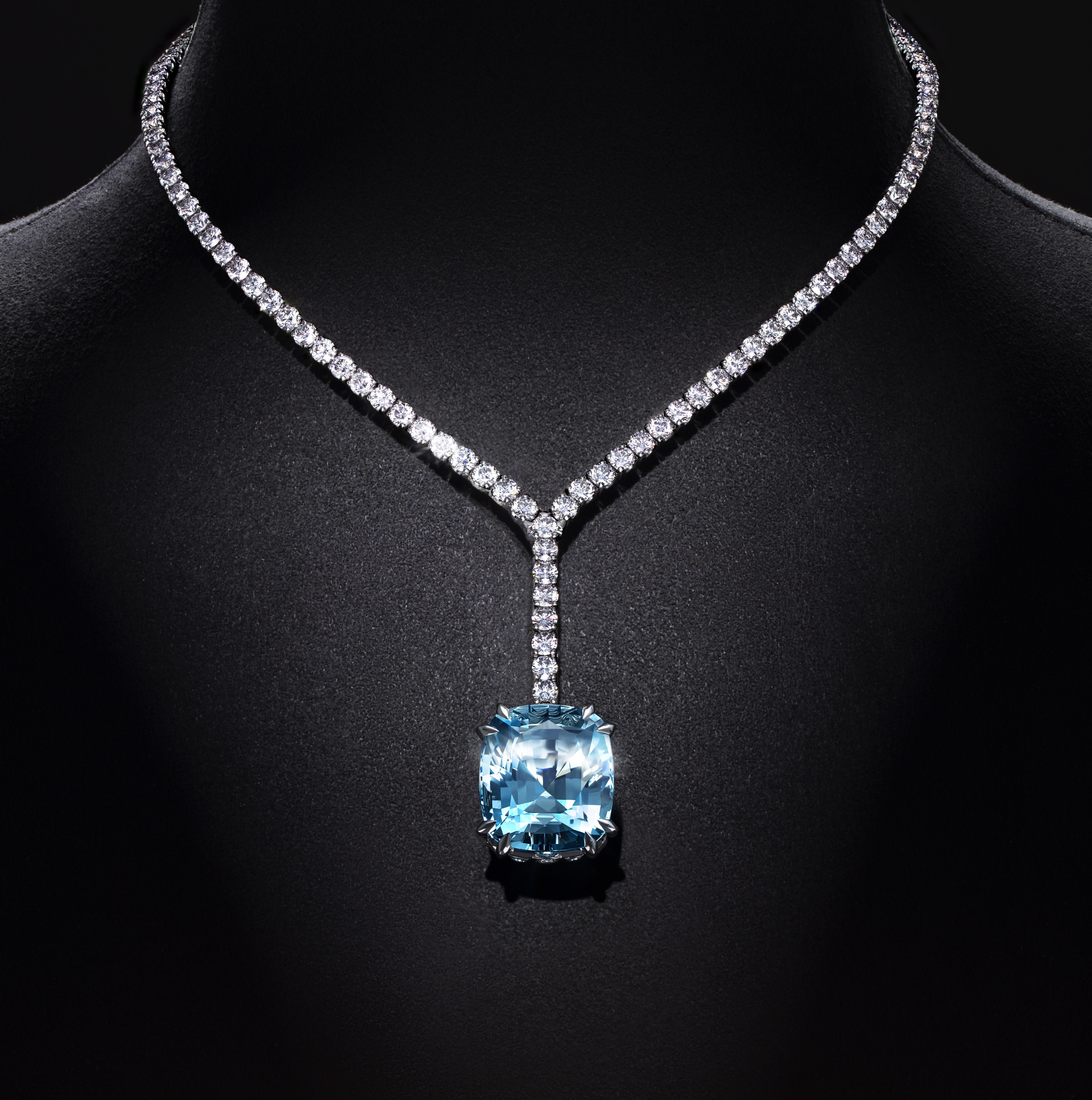 Завораживающий морганит более 47 ct венчает ослепительное бриллиантовое колье, излучая благородство, утонченность и великолепие. Фантазийная огранка раскрывает глубину и насыщенность оттенка солирующего самоцвета.
