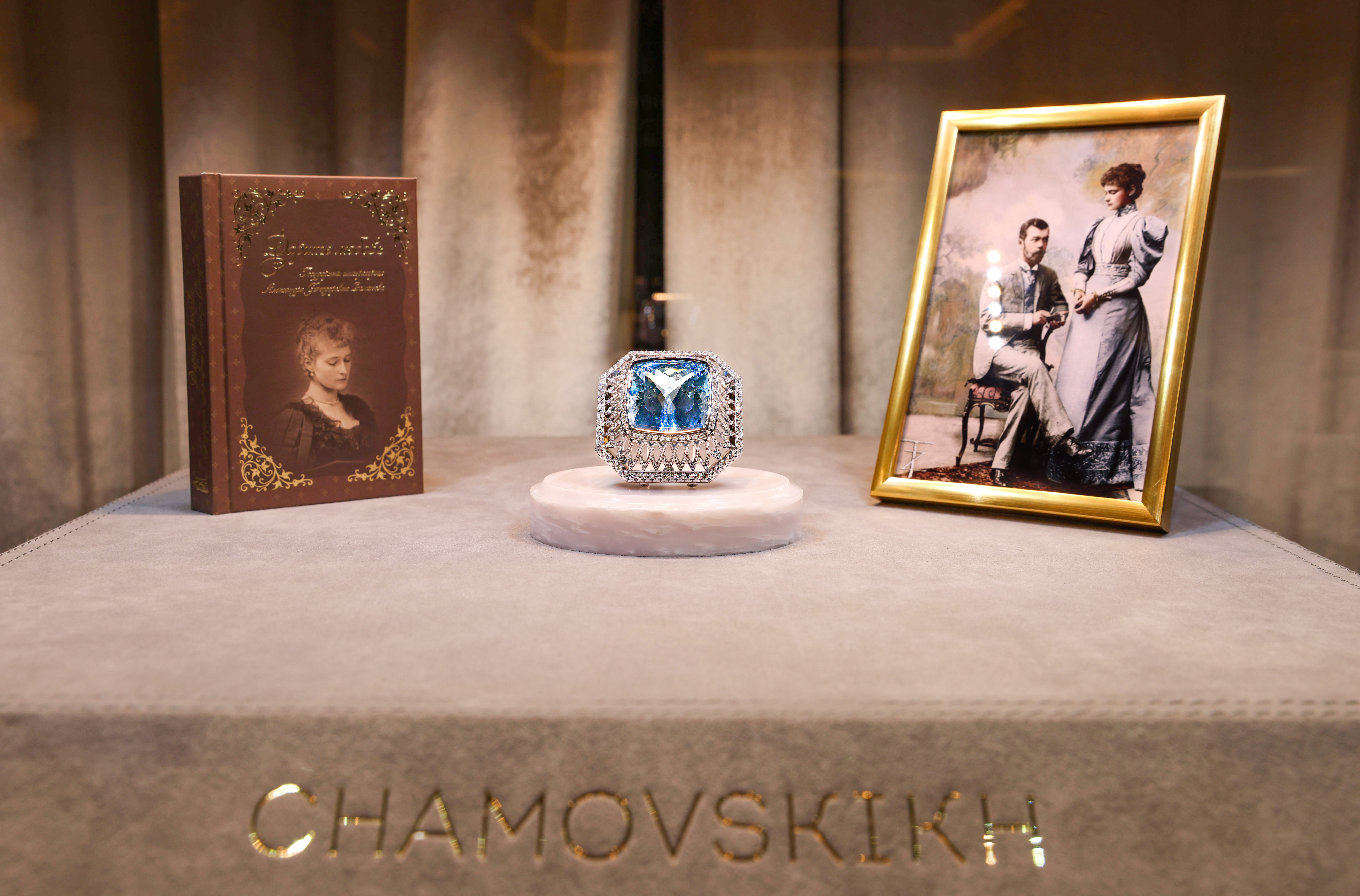 Особое место в экспозиции высокого ювелирного искусства заняла воссозданная императорская брошь. Работа над ней продолжалась почти год. В процессе изучения источников и месяцев кропотливого труда мастера дома CHAMOVSKIKH не ограничились реконструкцией, но творчески переосмыслили образ исторического артефакта.