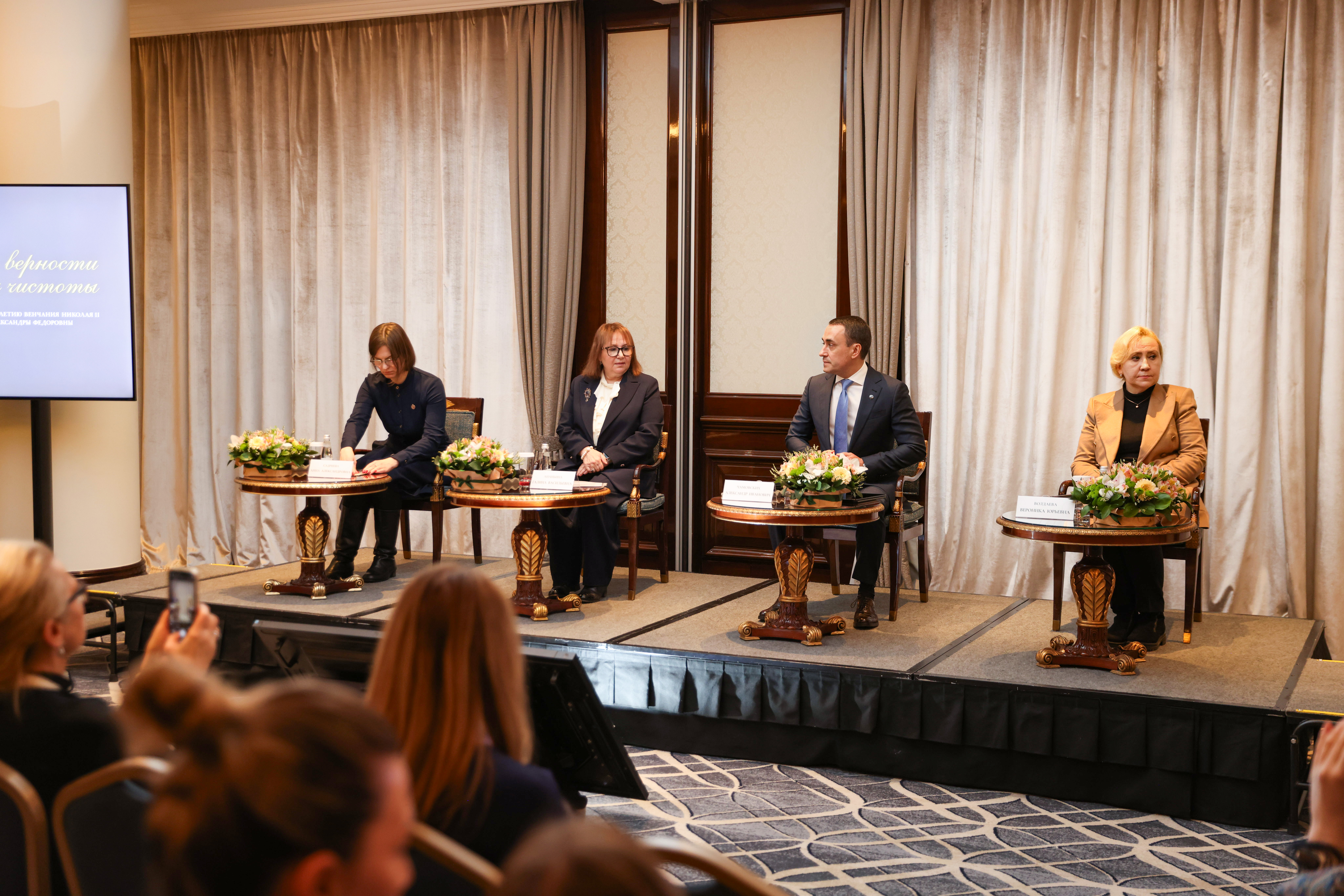 25 ноября в отеле The Carlton Moscow состоялся пресс-завтрак, посвященный презентации одного из самых любимых украшений русской императрицы Александры Федоровны. Бриллиантовая брошь с аквамарином была подарена ей цесаревичем Николаем Александровичем, будущим императором Николаем II накануне свадьбы. Известно, что украшение было приобретено в ювелирном доме Карла Фаберже и оставалось с императрицей на протяжении всех лет супружеской жизни. После революции брошь была вывезена из страны. Однако благодаря проекту «Символ верности и чистоты» вновь становится достоянием Российского государства. В 2024 году по инициативе Фонда развития художественной промышленности и ювелирного искусства ювелиры дома CHAMOVSKIKH воссоздали историческое украшение.