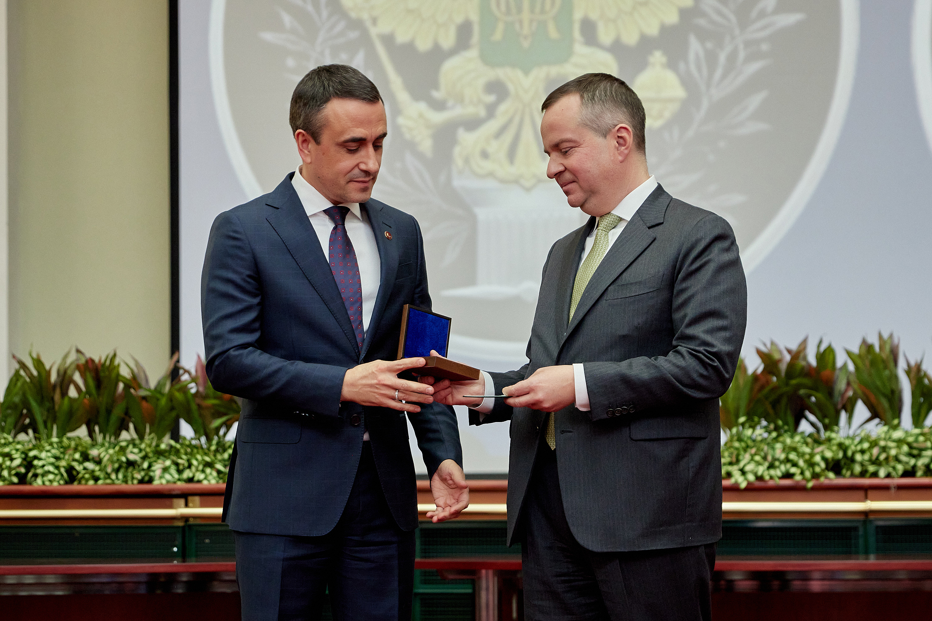 «Минфин — одно из ключевых ведомств в системе управления государством, отвечающее за экономический рост и финансовую стабильность, — подчеркнул в приветственном слове министр финансов РФ Антон Силуанов. — Когда мы готовились к юбилею [в 2022 году Минфин празднует свое 220-летие], мы обратились к традициям, изучая, какими наградами отмечали лучших промышленников. И увидели очень интересный и удачный опыт —  медаль «За трудолюбие и искусство». Сегодня мы вручаем ее тем, кому  присущи эти два важнейших качества».